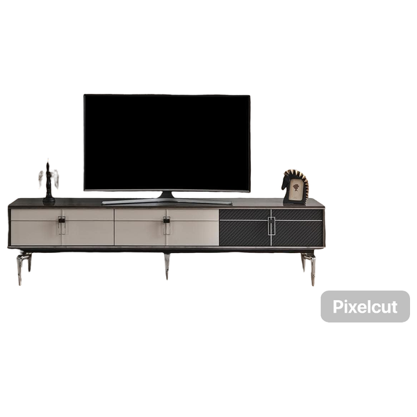 طاولة تلفاز خشبية بتصميم مميز مصنوعة من خشب عالي الجودة، تناسب شاشات التلفاز من 55 إلى 75 بوصة. أبعاد الطاولة 200 سم عرض × 60 سم ارتفاع × 40 سم عمق