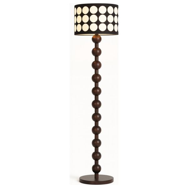 مصباح أرضي خشبي أنيق من فرست شاين مع عمود حبات بتشطيب جوزي. يحمل ظل قماشي أسود بنقاط بيضاء، ليضفي إضاءة هادئة ولمسة ديكور مميزة لغرفة المعيشة أو غرفة النوم أو المدخل.