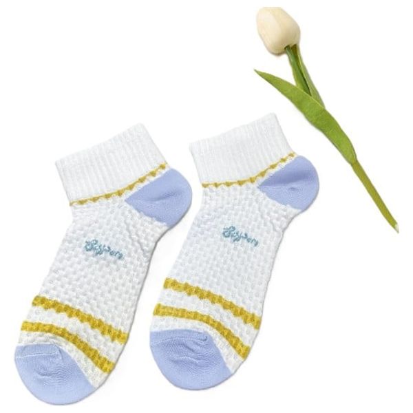 جوارب مصنوعة من قماش قطن ممزوج ناعم ومريح للارتداء الطويل، مع نسيج شبكي بتصميم خلايا العسل لتهوية ممتازة وتقليل التعرق. الكعب والأصابع معززة بلون خزامي لمتانة إضافية، مزودة بـشريطان أصفر لإطلالة رياضية عصرية وسويدج علوي مرن يمنع الانزلاق دون شدّ مزعج
