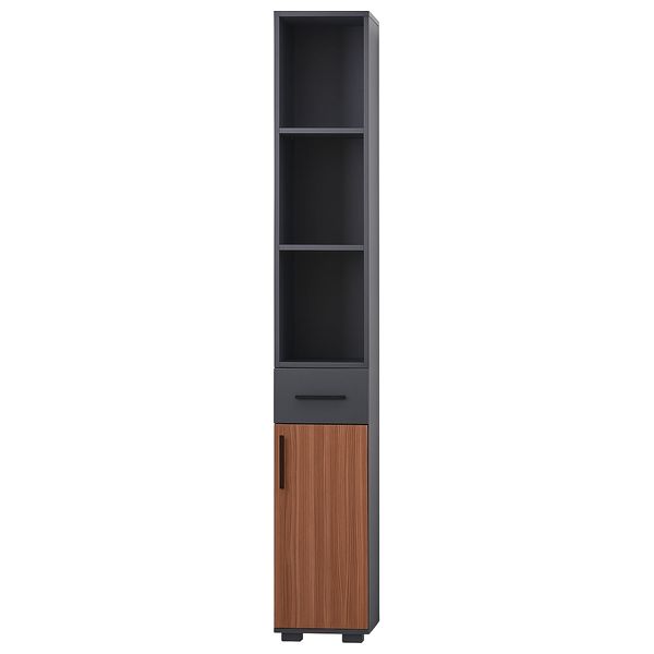 تحتوي الوحدة على رفوف مفتوحة للوصول السريع إلى المعاطف والإكسسوارات، ودرج مريح للأغراض الصغيرة، وخزانة سفلية للتخزين المغلق