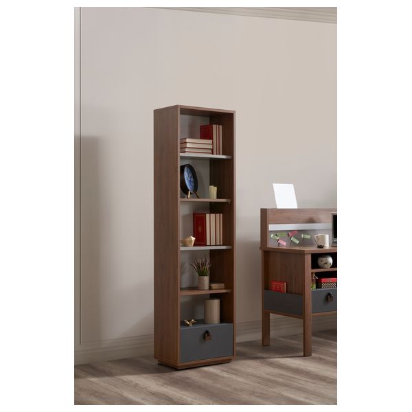 تنظيم الكتب، مجلات، دفاتر، وربّما بعض الديكورات أو مستلزمات دراسة/حفظ أوراق، وعميق بدرجة كافية لتخزين كتب ومجلدات عادية