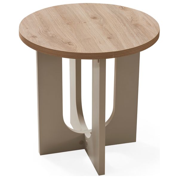 تتميز بسطح دائري من مظهر الخشب وقاعدة منحوتة. وبأبعاد 55 × 55 × 55 سم، توفر سطحًا مستقرًا بجانب الأريكة أو السرير لوضع المصباح والكتب أو المشروبات