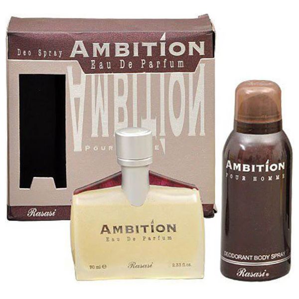 ي الجمع بين عطر أمبيشن من رصاصي، مجموعة هدايا رجالية تجمع بين عطر فخم وبخاخ جسم متوافق. الافتتاحية مريمية، برتقال وبرغموت، يتبعه القلب بنوتات زهرية وتوابل وأخشاب، وتنتهي القاعدة بمسك وعنبر. تتضمن المجموعة عطر دهن 70 مل وبخاخ للجسم لانتعاش مستمر.