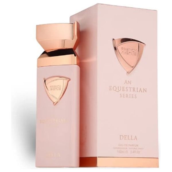 عطر إكويستريان سيريز ديلا من فرنش افيينو للنساء، او دي بارفان بسعة 100 مل، بزجاجة وردية ناعمة مع لمسات ذهبية وردية وعلبة متناسقة تعكس طابعاً أنيقاً وفاخراً، مناسب للاستخدام اليومي والمناسبات في العراق.