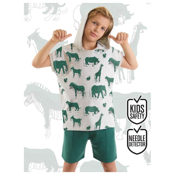 طقم من قطعتين. تيشيرت قطني جيرسي، رمادي مخلوط، بدون أكمام، بقلنسوة. مزين بطبعة حيوانات. الشورت مصنوع من قماش قطني. يحتوي على جيبين جانبيين. حزام خصر مطاطي وأربطة. جميع منتجات MSHB&G مصنعة وفقًا لإرشادات سلامة الأطفال. تم فحصها بواسطة أجهزة كشف المعادن. الخامة: الجزء العلوي: 65% قطن، 30% بوليستر، 5% إيلاستان - الجزء السفلي: 95% قطن، 5% إيلاستان. طريقة الغسيل: يُغسل على درجة حرارة 30 مئوية في دورة WM. يُغسل عكسيًا مع ألوان مماثلة. لا تستخدم المبيضات. لا تستخدم التنظيف الجاف. لا تستخدم المجفف.