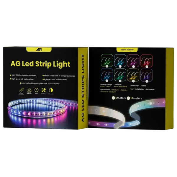 يوفّر شريط إضاءة LED RGB من AG إضاءة مرنة وقابلة للتخصيص بطول 5 أمتار، مع ألوان متعددة نابضة بالحياة. صُمم ليكون مثاليًا للإضاءة المحيطية والديكورية، وسهل التركيب ليضيف لمسة جمالية لأي مساحة.