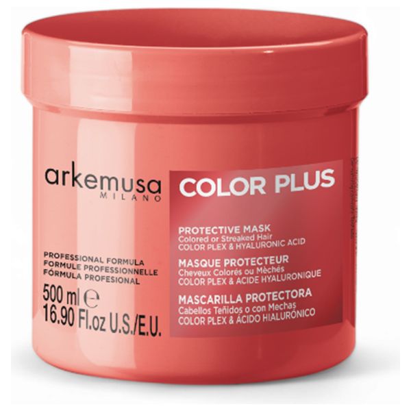 ماسك كلر بلاس من اركيموزا يستخدم لشعر الملون والمخطط وأيضا ينظف ويكثف الشعر ويعمل على تحسين لمعة الشعر لاحتوائه على كولور فليكس وحمض الهيالرونيك