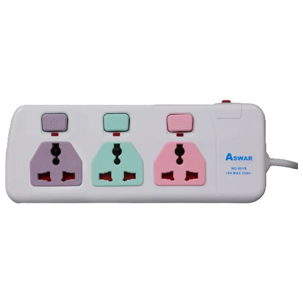 مقبس تمديد من أسوار EX901S/5M يتيح ثلاث مخارج مع كابل بطول 5 أمتار وبقدرة 13 أمبير. مصمّم بموصلات نحاسية داخلية 100% وغطاء ABS مقاوم للحرارة، مما يوفر قوة توصيل موثوقة مع حماية من الحمل الزائد للاستخدام الآمن في المنزل والمكاتب.