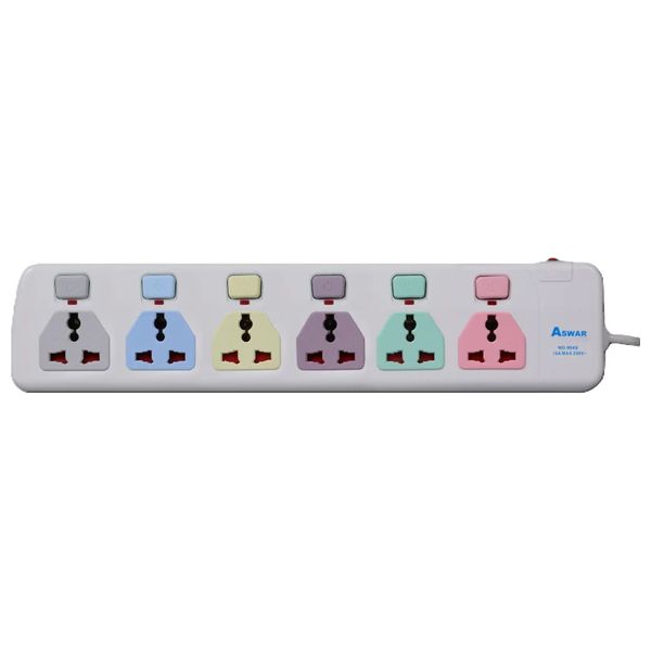 سيار طاقة اسوار - 6 منافذ - طول الكيبل 5 متر - ابيض