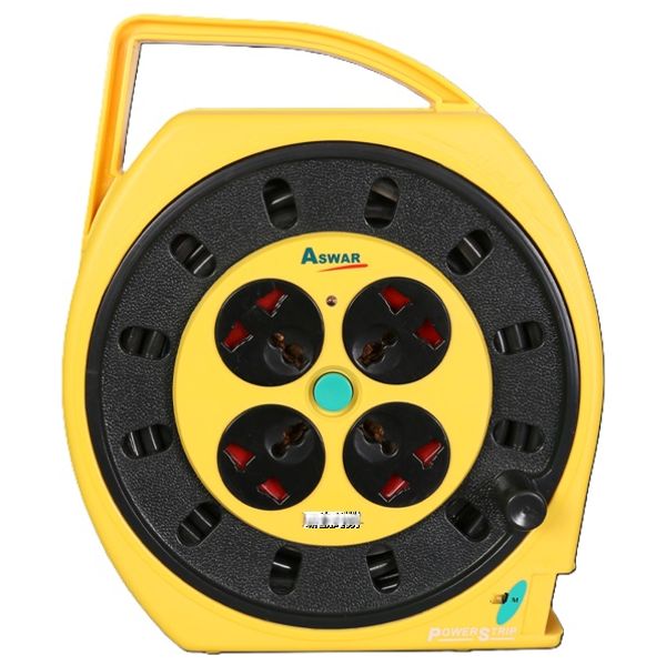 سيار بكرة مقابس تمديد اسوار - 15 متر - 13 أمبير - 4 منافذ - أسود