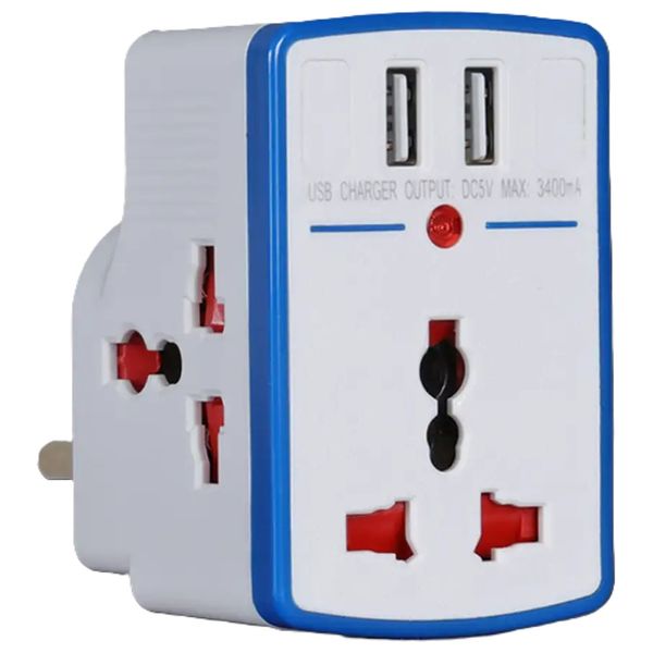 مقبس كهرباء متعدد اسوار - 3 منافذ - مع منفذين يو اس بي - 3400 مللي امبير - ابيض