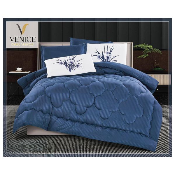 يوفر حلاً فِراشياً ناعماً من القطن 100%، يتضمن لحافاً بمقاس 230×250 سم، وشرشفاً مُثبتاً مقاس 200×200×30 سم، وأربعة أغطية مخدات