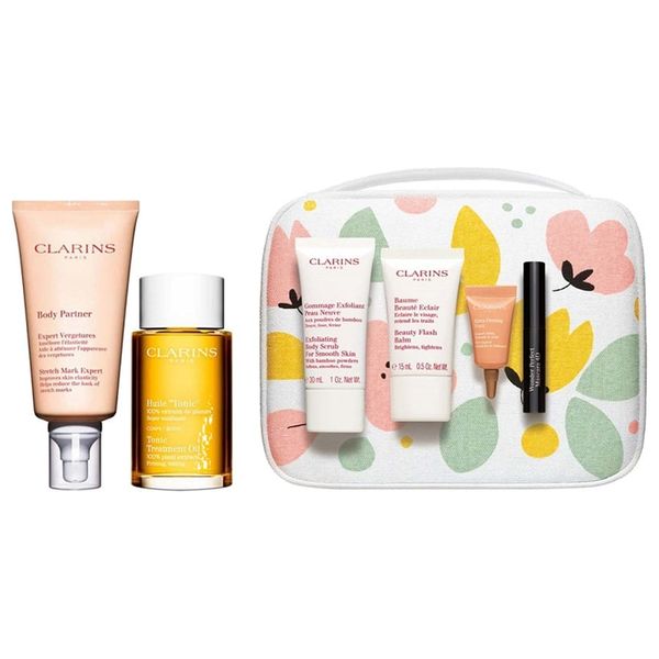 مجموعة هدايا للعناية بالبشرة، تتكون من: كريم بودي بارتنر لعلامات تمدد وتشقق الجسم بحجم 175 مل، زيت علاجي مقوي بحجم 100 مل، مقشر للجسم بحجم 30 مل، بلسم بيوتي فلاش بحجم 15 مل، مع حقيبة جميلة.