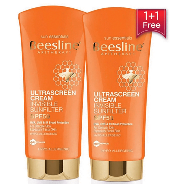 كريم واقي من الشمس Beesline الترا سكرين غير المرئي بعامل حماية SPF50، مناسب بشكل خاص للبشرة الحساسة في الوجه والرقبة. يمتص سريعاً ويترك مظهراً غير مرئي وذو ملمس مطفي، ما يجعله مثالياً عند وضع المكياج. يوفر حماية شاملة من UVA وUVB والأشعة تحت الحمراء وهو خالٍ من المواد المسببة للحساسية.