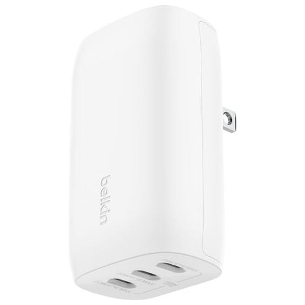 شاحن الحائط Belkin USB-C بثلاث منافذ مع PPS يوفر إجمالي طاقة قدره 67 وات ليمنحك شحنًا سريعًا وآمنًا للهواتف الذكية والأجهزة اللوحية وأجهزة الكمبيوتر المحمولة من مقبس واحد. تصميمه المدمج مناسب للمنزل والمكتب والسفر، مع توزيع ذكي للطاقة عبر ثلاث منافذ لشحن عدة أجهزة في آن واحد. متوافق مع أجهزة USB-C التي تدعم PPS/PD لضمان أداء موثوق وشامل.