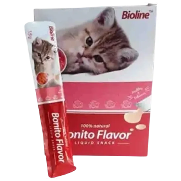 وجبة سائلة طبيعية 100% للقطط، توفر وجبة سائلة بنكهة البونيتو للقطط. تقديمه سهلاً كإضافة شهية للوجبات أو كمكافأة خفيفة يومياً. مناسب للاستخدام اليومي لتعزيز الوجبات وتقديم تبديل نكهة محببة للقطط