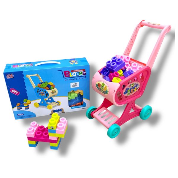 لعبة المكعبات باللونين الازرق والوردي مع عربه بلاستيك صغيره