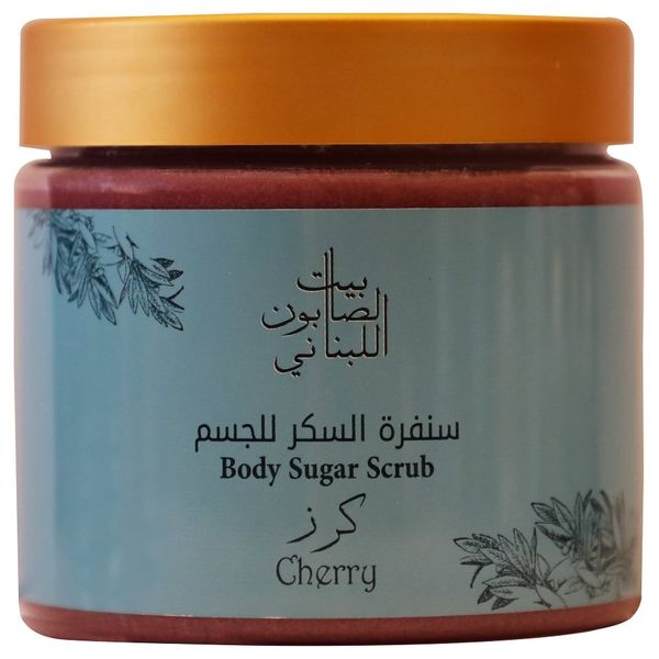 مقشر الجسم بالسكر والكرز, يزيل خلايا الجلد الميتة والدهون الزائدة من الجسم, ويمنح البشرة النعومة والترطيب.