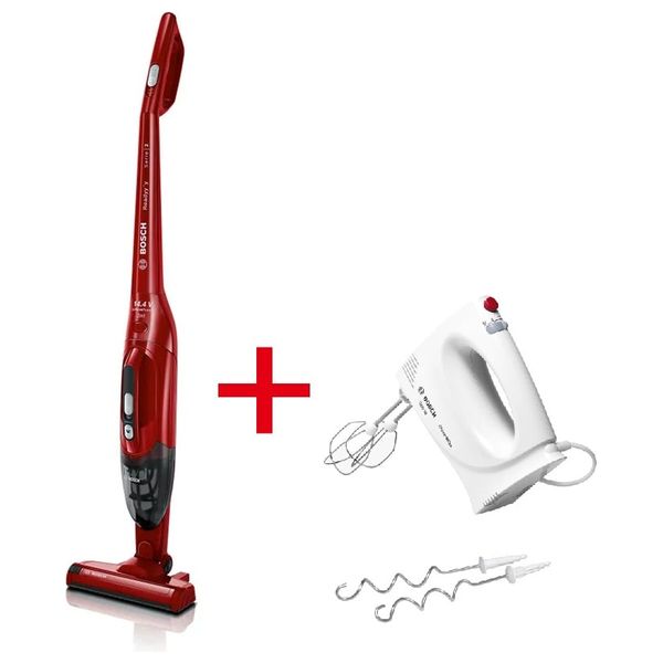مكنسة بوش كهربائية بدون كيس BBHF214R - احمر + خلاط يدوي