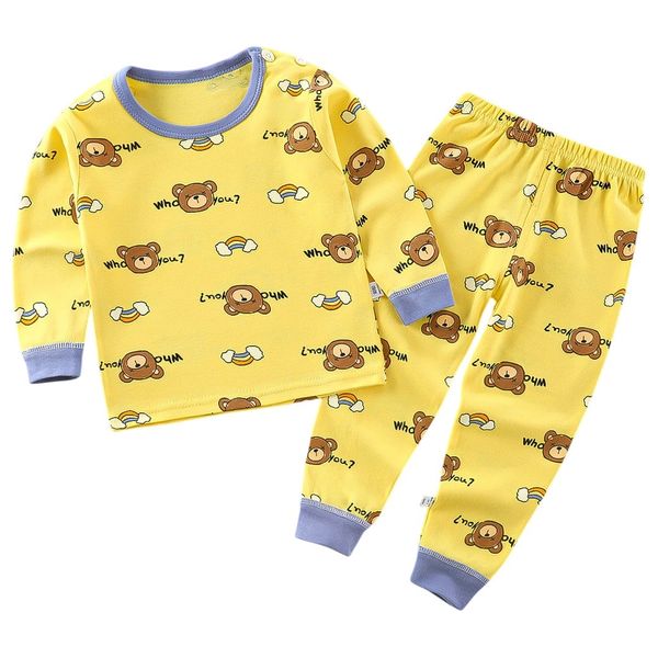 طقم بيجاما قطني أصفر اللون للأطفال، مزين بطبعة دب، يوفر نومًا مريحًا بفضل ملمسه الناعم. يتضمن الطقم قميصًا بأكمام طويلة وأساور مطاطية عند الساقين لسهولة الارتداء وملاءمة مثالية