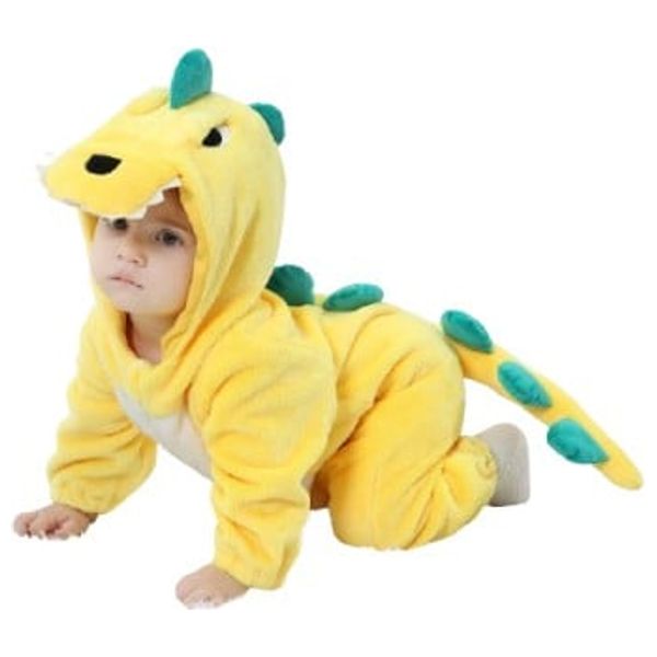 يتميز هذا الزي الأصفر الفاخر على شكل ديناصور بغطاء رأس مريح، وقماش ناعم، وسحاب داخلي لسهولة الارتداء