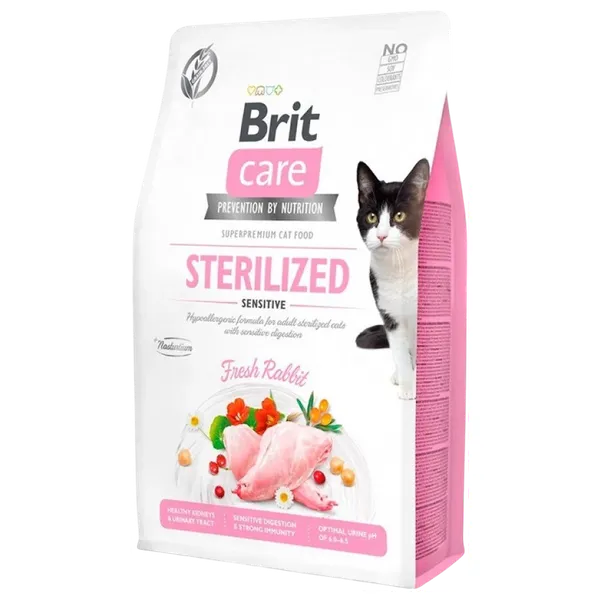 غذاء قطط خالٍ من الحبوب مخصص للقطط البالغة المعقمة ذات الهضم الحساس. تركيبة هايبوالرجينيك تركّز على لحم الأرنب الطازج كمصدر البروتين الأساسي، مع إضافة أرنب مجفف بنسبة 26% لدعم الهضم وتحملها وبفضلها نسبة الكوليسترول منخفضة. الصيغة تدعم صحة الكلى والمسالك البولية بمساعدة نبق البحر والناستورتيوم، مع انخفاض المغنيسيوم وL-ميثيونين للحفاظ على درجة حموضة البول بين 6.0 و6.5. البروبيوتيك والبريبيوتيك يدعمان صحة الجهاز الهضمي والجهاز المناعي. خالٍ من الحبوب والملونات والمواد الحافظة والكائنات المعدلة وراثياً والصويا