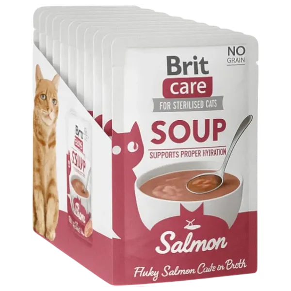 طعام قطط رطب مغذٍ مصمم للقطط البالغة، بما في ذلك المعقّمة. تمنح هذه الشوربة بنكهة السلمون تغذية متوازنة في عبوة سهلة التقديم، وتحتوي على تورين وبروبيوتيك لدعم الهضم وصحة القلب