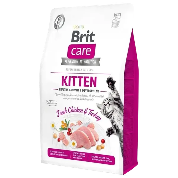 طعام كامل للقطط الصغيرة والقطط الحامل أو المرضع، خالٍ من الحبوب وهضم سهل ومغذيات أساسية تدعم احتياجات الطاقة وتطور الجنين والنمو العام. يحتوي على بروبيوتيك ومضادات بكتيرية للمساعدة في صحة الجهاز الهضمي والمناعة، اللبأ المناعي لتعزيز المناعة، التورين لصحة القلب والعينين، وبروتين عالي لدعم نمو العضلات. الوصفة خالية من الألوان الاصطناعية والمواد الحافظة والكائنات المعدلة وراثياً والصويا