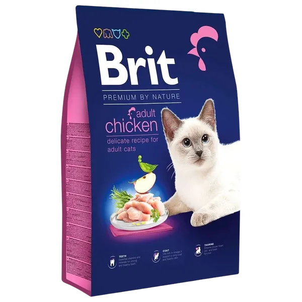 غذاءً متوازنًا ولذيذًا للقطط البالغة. يحتوي على بروتين دجاج عالي الجودة مع فيتامينات ومعادن وبريبيوتيك لدعم المفاصل والعضلات والأسنان والمناعة الطبيعية. يحتوي على مرق كبد الدجاج لزيادة الشهية ويتضمن أوميغا-3 وأوميغا-6 لصحة الفراء.
