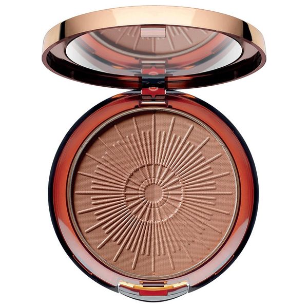 برونزر باودر ناعم لإضاءة متوهجة يحتوي على أصباغ عاكسة للضوء تعزز السمرة وفيتامين ه, فهو مزيج من لونان دافئان ومتناسقان تمامًا يجعلان البشرة تبدو ناعمة بشكل خاص.