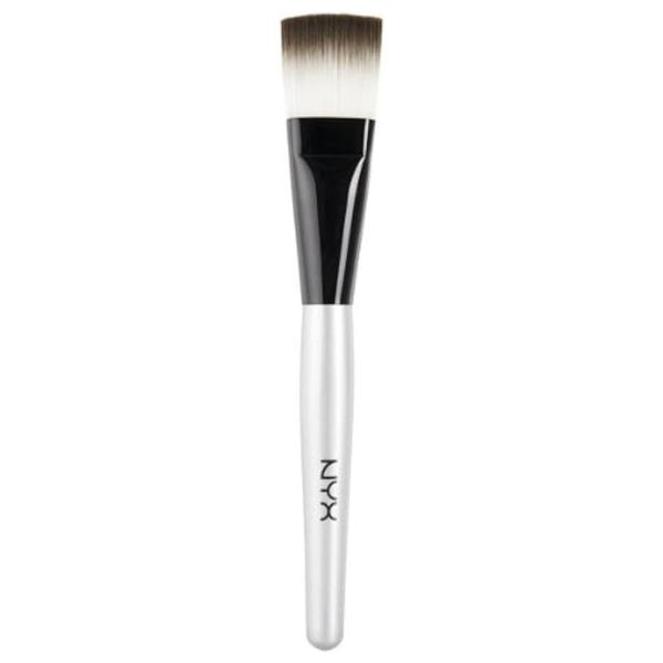 فرشاة مكياج انيقة بمقبض ابيض, تتميز بشعيرات طبيعية، مثالية لوضع البودرة والمستحضرات السائلة والكريمية, للحصول على لمسة نهائية خالية من العيوب.