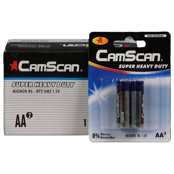 بطاريات كامسكان AA توفر طاقة موثوقة للأجهزة اليومية. كيمياء زنك كلوريد، جهد 1.5 فولت، في عبوتين داخل عبوة بلاستيكية. مناسبة للتحكم عن بُعد والساعات والألعاب والأجهزة المنزلية الأخرى.