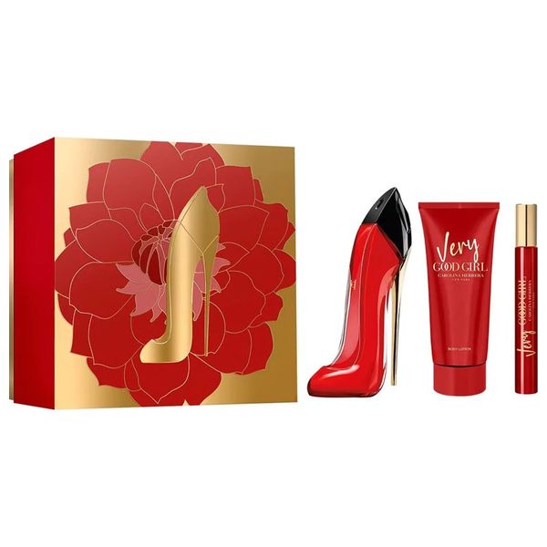 مجموعة الهدايا العطرة المذهلة للنساء برائحة منعشة من الفانيليا و نجيل الهند لتقديمها في اي مناسبة, تحتوي المجموعة على: عطر كارولينا هيريرا فيري جود جيرل بحجمين 80 مل و10 مل، لوشن الجسم 100 مل.
