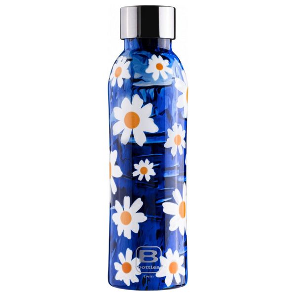 زجاجة ماء من كازا بوجاتي BOT.TWIN 500 DAISY بنمط أزرق مزهر. مصنوعة من الفولاذ المقاوم للصدأ 18/10 وتستخدم عزل فراغي مع طبقة نحاسية بين الجدران للحفاظ على درجة الحرارة لفترة طويلة مع تقليل التعرّق الخارجي. الفتحة واسعة لتسهيل الملء والتنظيف، والغلاف مزدوج العزل ليحافظ على الحرارة بشكل أفضل. المواد آمنة وخالية من BPA وBPS والفثالات وقابلة لإعادة التدوير.