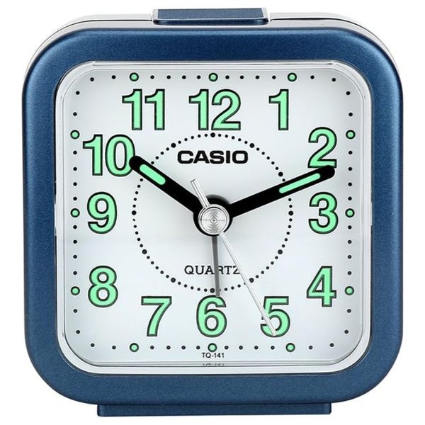 ساعة منبه كاسيو TQ-141-2DF ساعة أنالوج مدمجة في هيكل بلاستيكي مربعي. تعتمد الحركة كوارتز لضبط الوقت بدقة وتتميز بعقارب مضيئة للرؤية الواضحة في الإضاءة المنخفضة. تعرض الساعة عرض 12 ساعة وتحتوي على منبه مدمج، مما يجعلها مناسبة للمكاتب، طاولات السرير ومساحات العمل الصغيرة. تعمل ببطارية CR2 واحدة مرفقة وتزن حوالي 80 جرام بأبعاد 6.7 × 6.4 × 3.4 سم. مصنوعة في الصين، الإطار الأزرق يوفر ساعة مكتبية بسيطة وعملية بمظهر كلاسيكي.