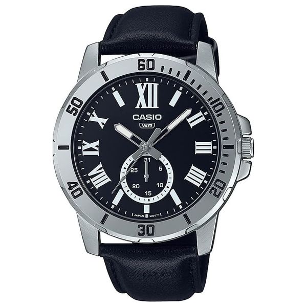 تتميز هذه الساعة بشاشة تناظرية وحزام جلدي متين، مما يجعلها كلاسيكية ومناسبة لأي مناسبة، تضمن حركتها الكوارتز الموثوقة دقة عالية في ضبط الوقت، بينما يضفي تصميمها المقاوم للماء لمسة عملية على الارتداء اليومي