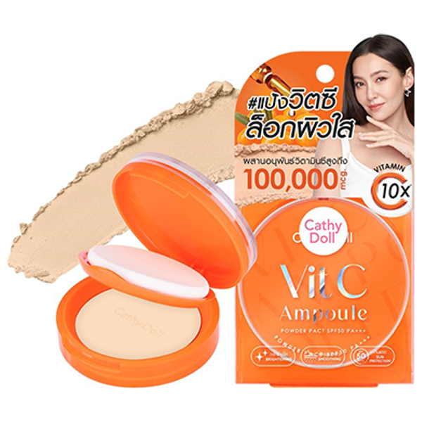 بودرة مضغوطة أمبول فيتامين C من ماركة كاثي دولفيتامين سي لتفتيح البشرةحماية SPF50 من أشعة الشمستقليل الزيوت الزائدة وتغطية البقع