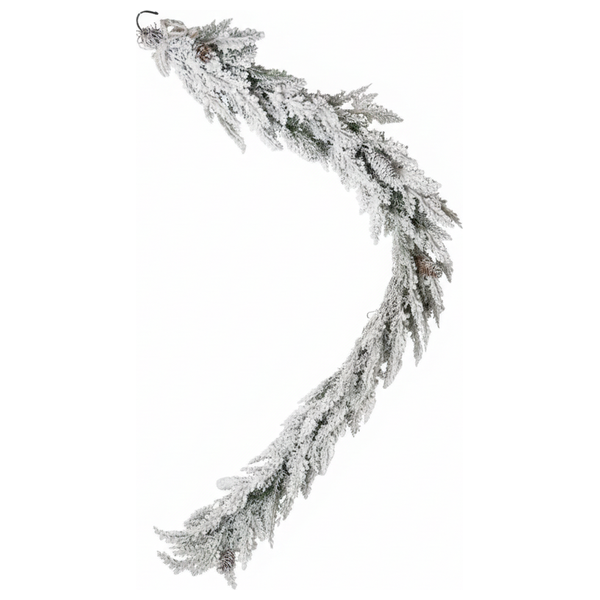 حبل زينة ثلجي صناعي مصمم لتزيين المنازل خلال موسم العطلات، مع فروع شجر مغطاة بالثلج لتوفير مظهر ثلجي أنيق