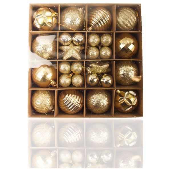 كرات لامعة وغير لامعة بقطر 6سم و3سم مع نجوم و عدد الكرات الكبيرة 12 والصغيرة 28 ونجمتين
