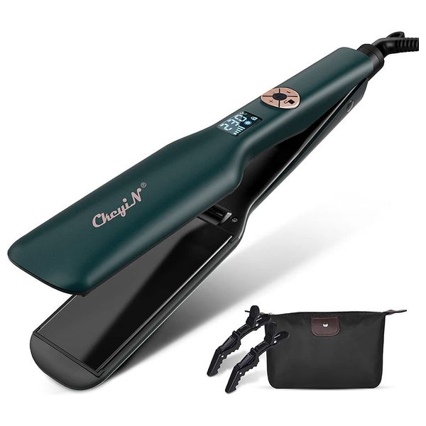 | إعدادات درجة حرارة قابلة للتعديل من 120 إلى 230 درجة مئوية تسخين سريع بعنصر تسخين بي تي سي ولوحة سيراميك التورمالين شاشة LCD لعرض درجة الحرارة سلك طاقة دوار 360 درجة بطول 2 متر مفتاح قفل ذكي مناسب لجميع أنواع الشعر جهد كهربائي مزدوج 100-240 فولت مادة قشرة ABS لون زيتوني طافي وزن الجهاز 468 غرام |