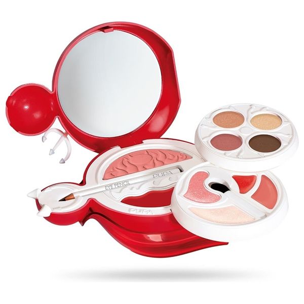 علبة مخصصة لماكياج الوجه والعينين والشفاه, تتضمن 1 أحمر خدود مضغوط, 4 ظلال عيون مدمجة,1 قلم كحل للعيون,1 أحمر شفاه مات, 4 احمر شفاه لامع.