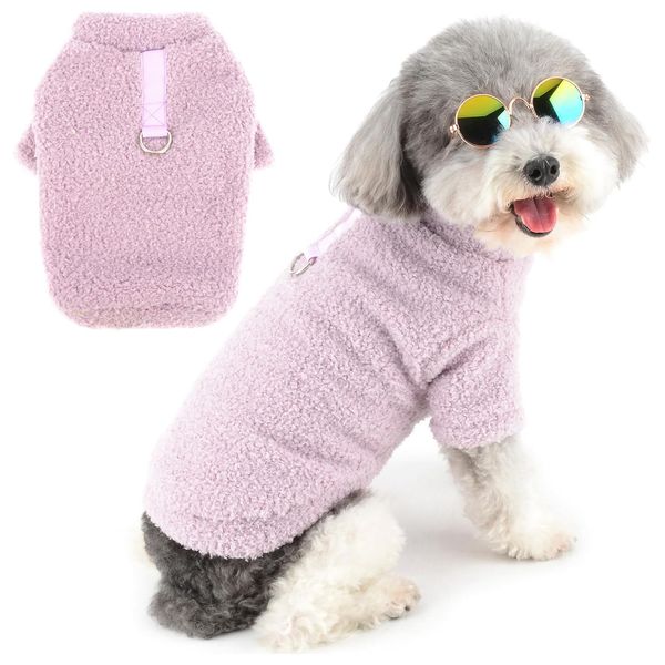 سترة شتوية من فليس ناعم للكلاب والقطط الصغيرة، دافئة ومريحة، مع تصميم مرن وإغلاق بسحاب سهل، تتضمن حلقة D لربط الحزام أثناء المشي القصير، قابلة للغسل ومناسبة للاستخدام الداخلي والخارجي