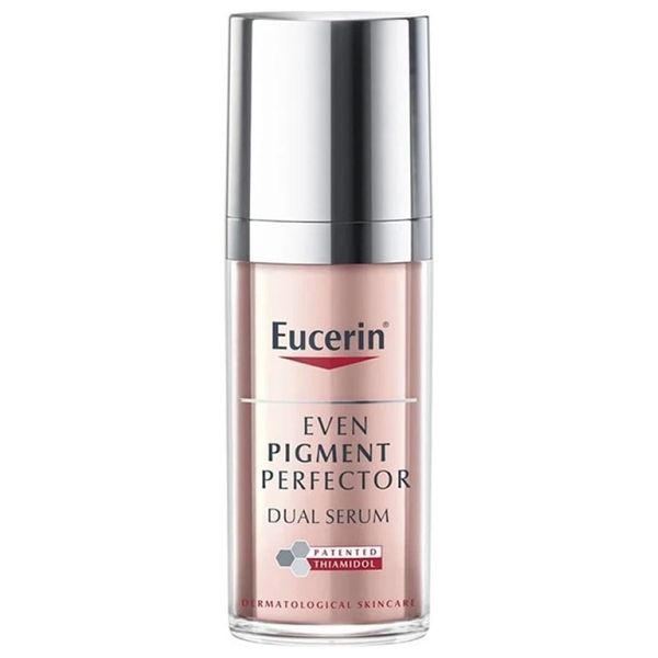 سيروم مزدوج بالثياميدول وحمض الهيالورونيك المركز, يقلل بشكل فعال من البقع الصبغية ويمنع ظهورها مرة أخرى, للحصول على بشرة متجانسة ومشرقة.