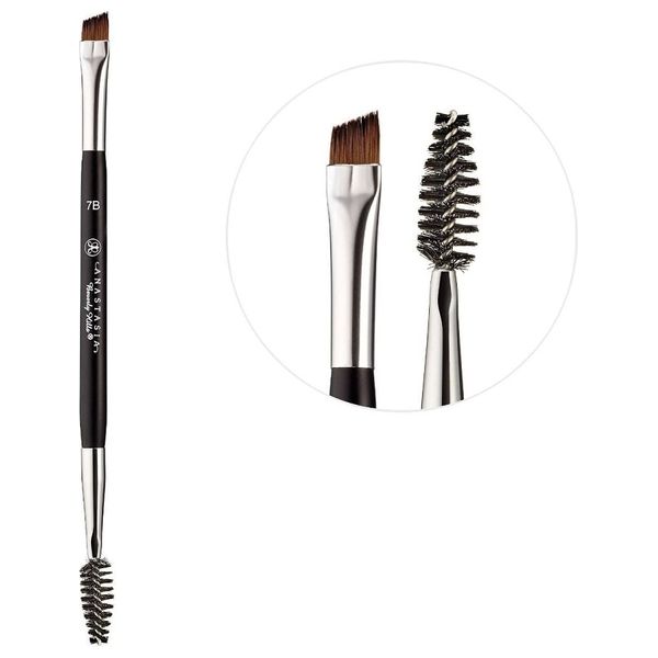فرشاة مزدوجة لتحديد الحواجب, تأتي برأس ذو شعيرات صناعية لينة بحافة رقيقة للغاية ومائلة, ورأس آخر بفرشاة لدمج اللون وتمشيط الحواجب, مثالية للحصول على مظهر نهائي ناعم وطبيعي.
