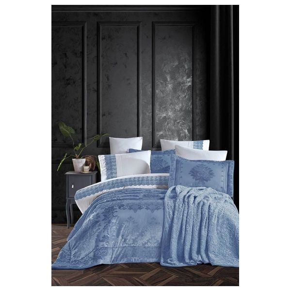 تتكوّن المجموعة التركية الصنع من 10 قطع تشمل لحافاً مقاس 260×240 سم، وتغطية لحاف 220×200 سم، وملاءة بقياس 260×270 سم، وست أغطية وسادة بمقاس 50×70 سم وبطانية واحدة