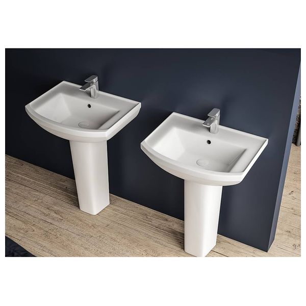 مغسلة بسيراميك مع قاعدة عمود بتصميم عصري ونظيف، تجمع المتانة وسهولة التنظيف