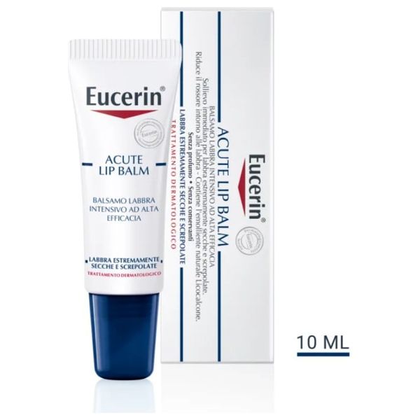 بلسم شفاه Eucerin Acute 10 مل يوفر ترطيباً خفيفاً للحفاظ على نعومة الشفاه وراحتها طوال اليوم. أنبوبة مدمجة وسهلة الحمل للاعتناء بالشفاه أثناء الحركة، وتساعد في تهدئة الجفاف وحماية الشفاه من عوامل البيئة اليومية.
