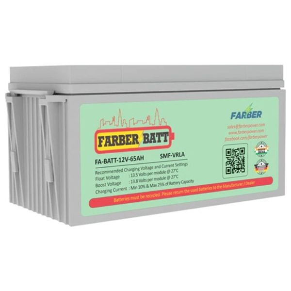 بطارية FARBER بسعة 12V / 65AH من نوع SMF (Sealed Maintenance Free) مصممة لتوفير طاقة مستقرة وطويلة المدى للأجهزة المختلفة، بما في ذلك أجهزة UPS والأجهزة الكهربائية الأخرى، مع سهولة في الاستخدام بدون الحاجة لصيانة دورية.