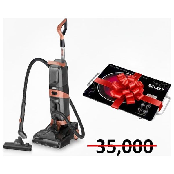 تقدِّم مكنسة GALAXY البخارية الثلاثية في واحد تنظيفاً عميقاً للسجاد والأرضيات والكنب والستائر بفضل تصميمها الثلاثي في واحد: بخار، ماء ساخن، وشفط قوي. تتميز بتحكم HydroSteam الإلكتروني لضبط تدفق البخار والماء بدقة، وخزانات ماء كبيرة (النظيف 4 لتر، المتسخ 2.5 لتر)، وطول سلك 6 أمتار، وخرطوم 2.5 م. يسهم سخان التجفيف بقدرة 100 واط في تجفيف أسرع، بينما المحرك 1000 واط والغلاية 1200 واط لإنتاج شفط ≥ 18 كيلوباسكال وتدفق هواء 16.5 لتر/ث. تحمل الجهاز شهادات CB وGS وRoHS وعزل مزدوج لضمان السلامة اليومية. مع هدية: طباخ ليزر بالأشعة تحت الحمراء 3000 واط. مناسب للاستخدام اليومي في البيوت والمكاتب بالعراق.