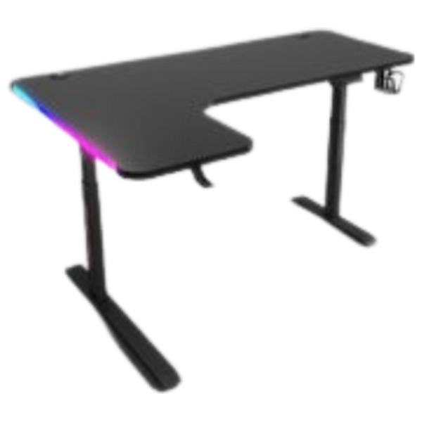 مكتب الألعاب DESK-GAMING-Y103-BLACK يتميز بسطح متين من ألياف الكربون مع إضاءة RGB يمكن التحكم بها عبر ريموت. مزود بـ علاقة سماعة وحامل كوب لسهولة الاستخدام. قابل لتعديل الارتفاع من 72 إلى 117 سم، مع سطح واسع 160 × (60–100) سم مثالي لمعدات الألعاب المتكاملة.